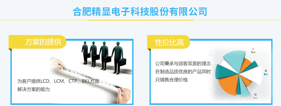 ?合肥精顯電子科技股份有限公司成立于2012年,由液晶行業(yè)知名企業(yè)廈門精顯電子有限公司投資建設(shè),是一家研發(fā)、生產(chǎn)、銷售高品質(zhì)液晶屏(LCD)、液晶顯示模塊(LCM)、背光(LED)、電容式觸摸屏(CTP)等節(jié)能環(huán)保產(chǎn)品并能為顧客提供解決方案的高新科技企業(yè)。 ?公司占地55畝,擁有建筑面積超過20000平米和潔凈廠房5400平米。 ?公司擁有一個(gè)超過15年以上LCD行業(yè)運(yùn)營(yíng)制造經(jīng)驗(yàn)的團(tuán)隊(duì)。 ?公司獲得研發(fā)專利20余項(xiàng)。 ?公司通過C-TPAT認(rèn)證,ISO9001:2008認(rèn)證,產(chǎn)品通過了ROHS、REACH。 ?我們產(chǎn)品廣泛應(yīng)用于智能儀表(水表,電表,氣表)、家電、儀器儀表、計(jì)量器械、文教 器具、UPS電源、智能手機(jī)機(jī)、平板電腦等電子產(chǎn)品的顯示和控制。目前我們已樹立了良好的品牌形象,并與眾多公司(如GE, Ja...